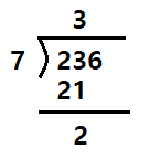 236 나누기 7을 전체 식으로 나타내면 다음과 같다.